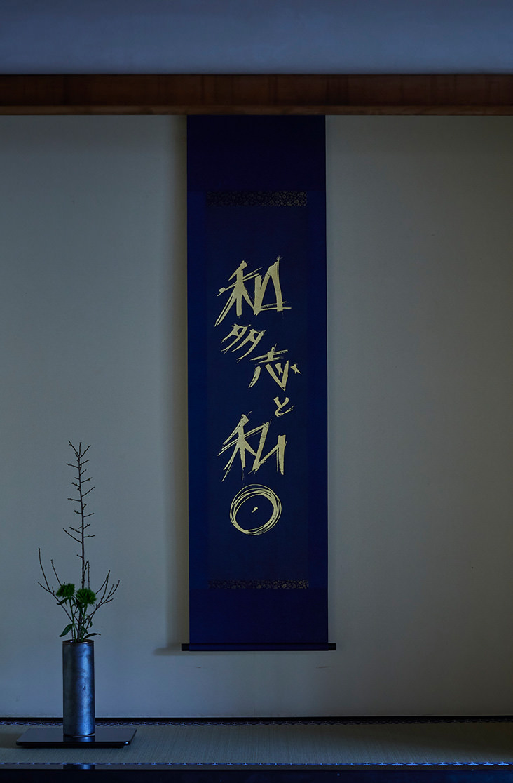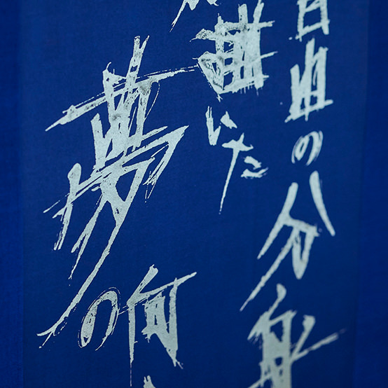 BUAISOUが作る深く澄んだ藍の品格と井上光雅堂が仕立てる美しい軸装。